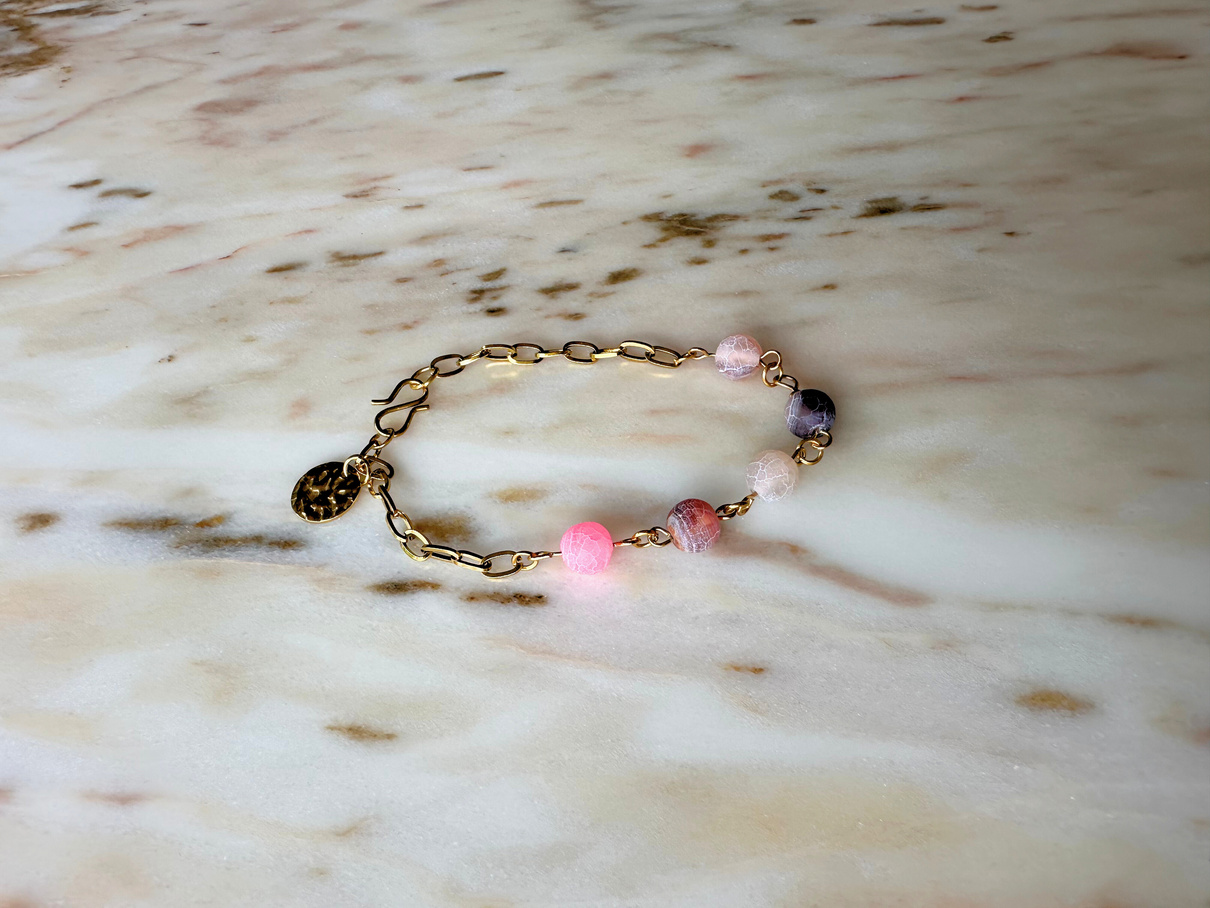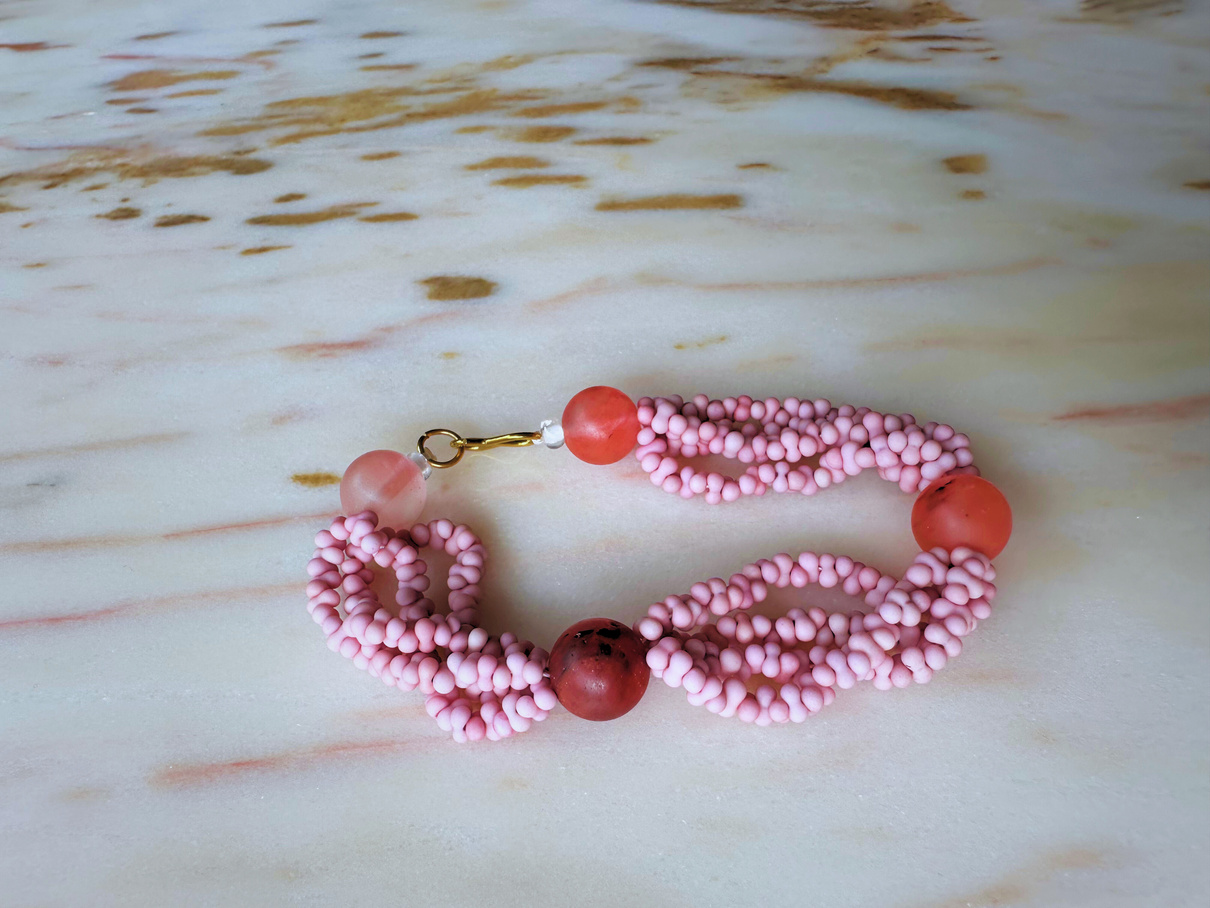 Pulsera rosada con abalorios y piedras Tigerskin Frosted