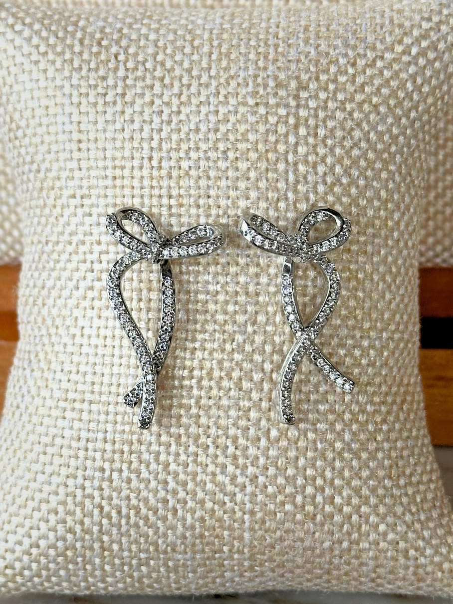 Arete en plata ley 925 con lazo en cobre con diseño de diamante de imitación