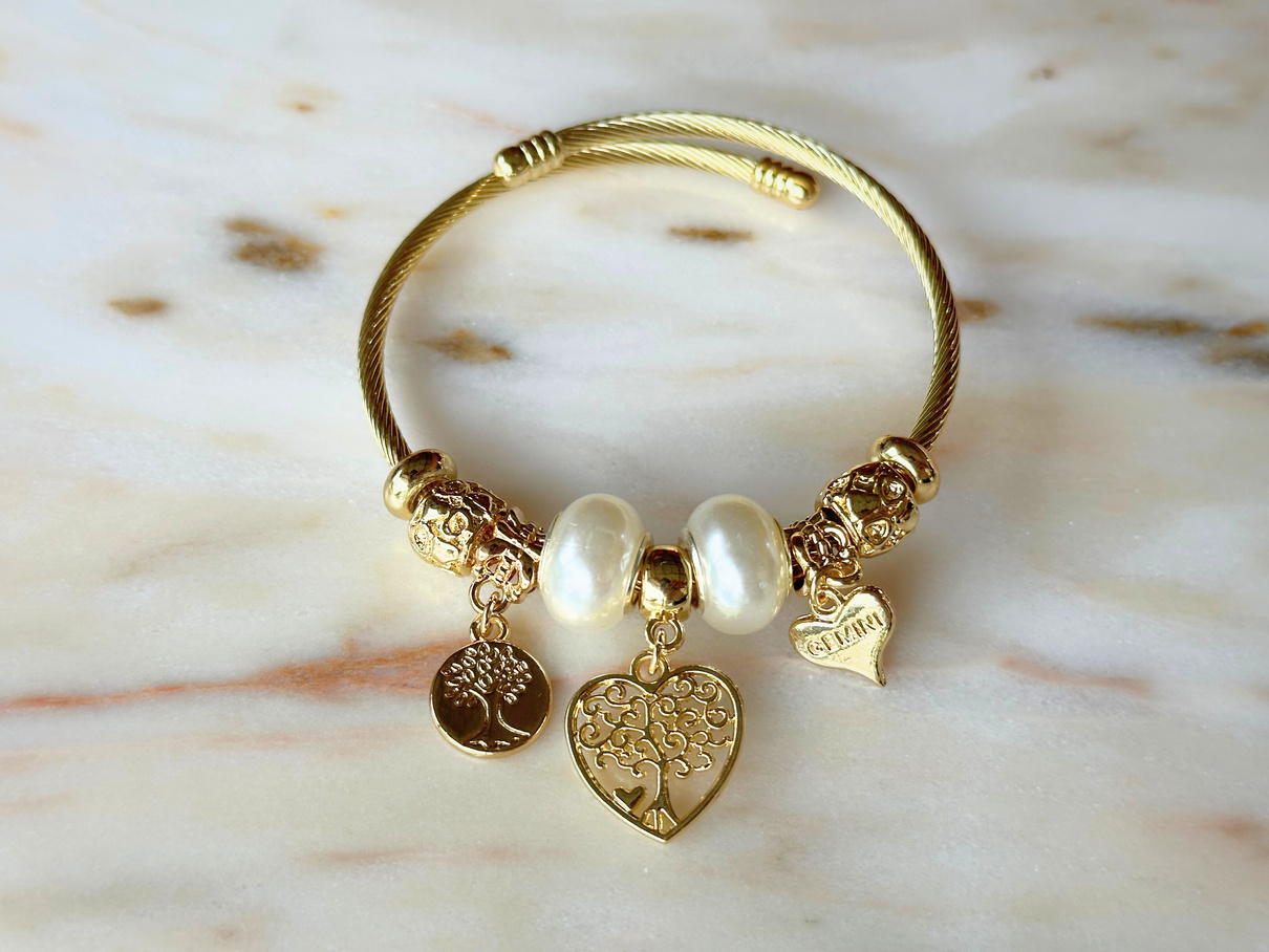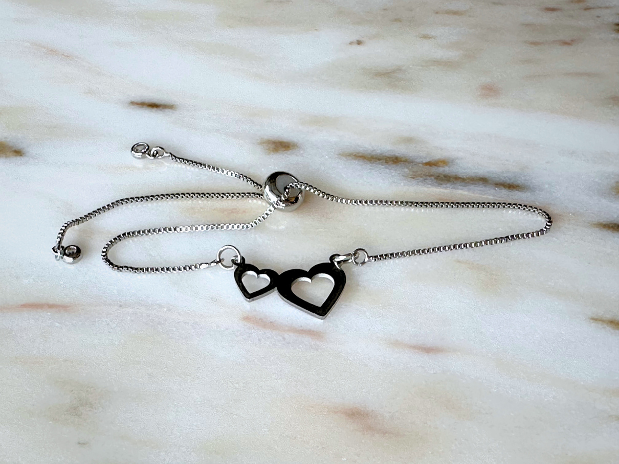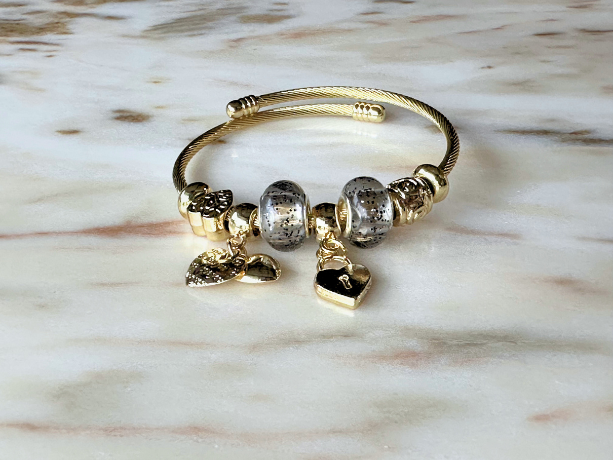 Pulsera Abierta en Acero inoxidable Con Colgante Metálico Con corazones