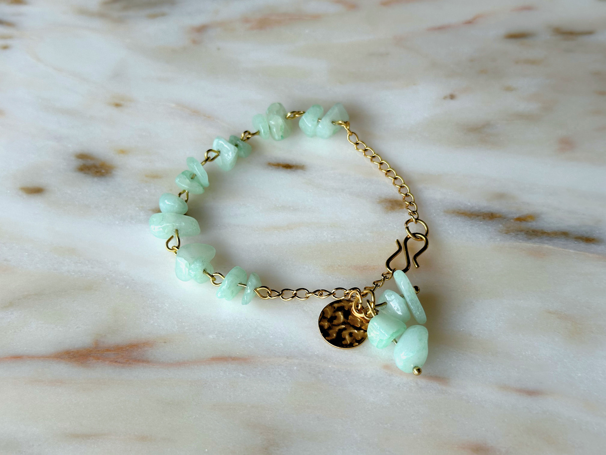 Pulsera de Chips de Amazonita en Acero Inoxidable Dorado