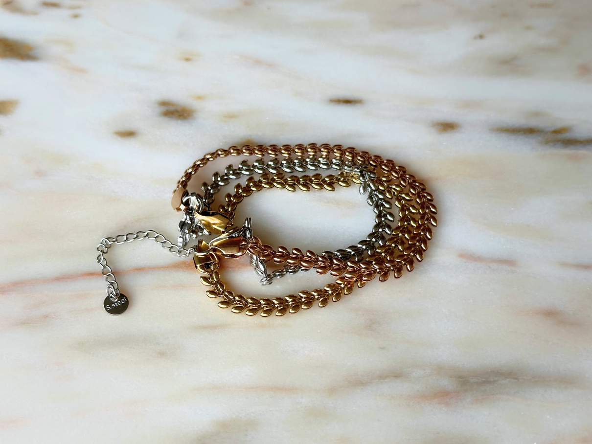 Pulsera con retro en tres todos en cadena de acero inoxidable