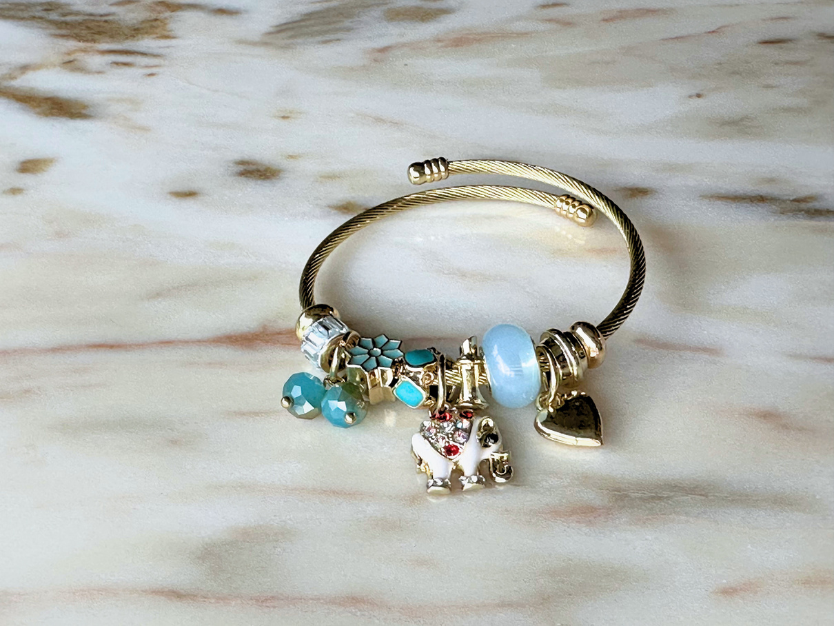 Pulsera Abierta en Acero inoxidable Con Colgante Metálico Con elefante