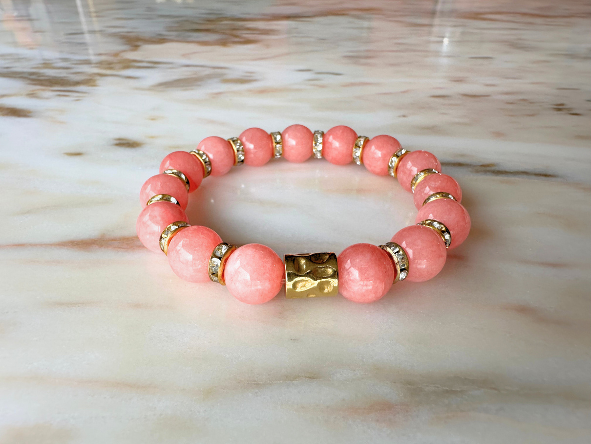 Pulsera Elastica de Jade Natural Rhodochrosite