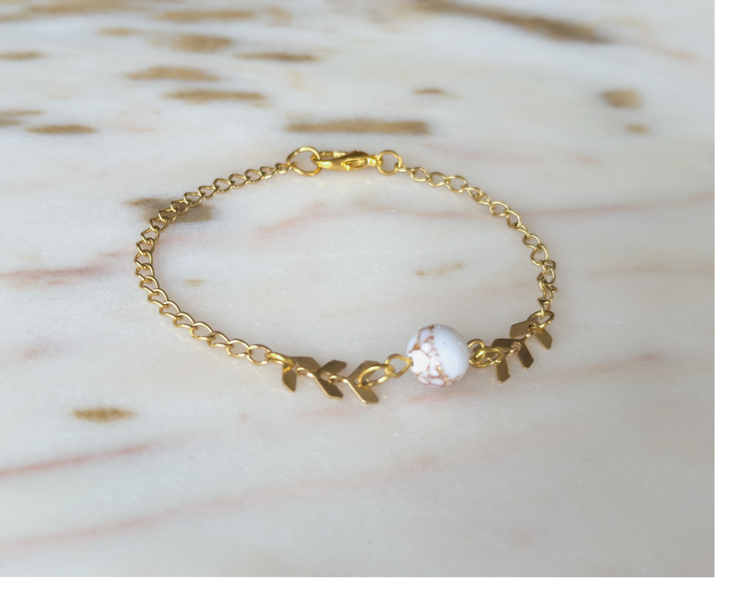 Pulsera de Piedra Blanca Concha Howlita en Oro