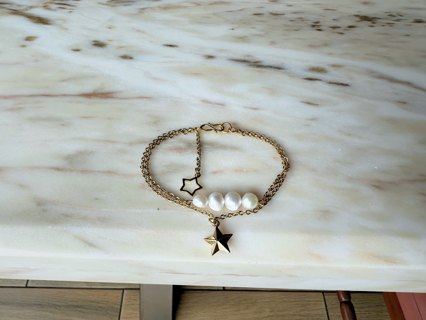 Pulsera de Cadena Doble con Perlas Cultivadas y Estrella