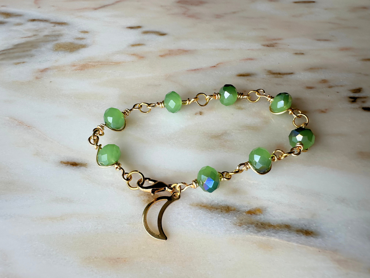 Pulsera de cristales Artificiales verde en acero inoxidable