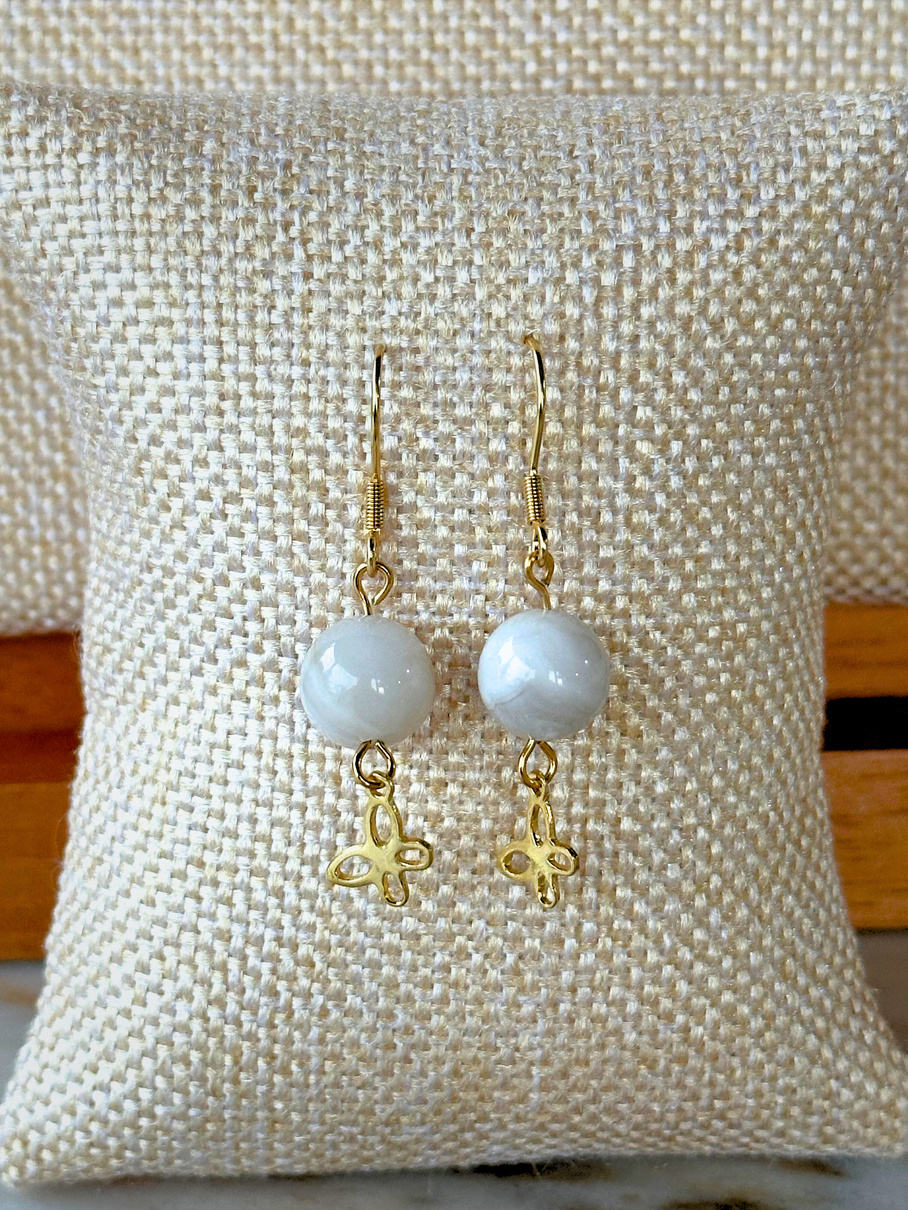 Aretes en Acero Inoxidable con pirdra agata blanca