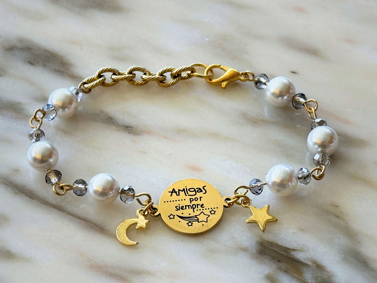 Pulsera de Perlas Nácar y Cristales: Vínculo Eterno entre Amigas